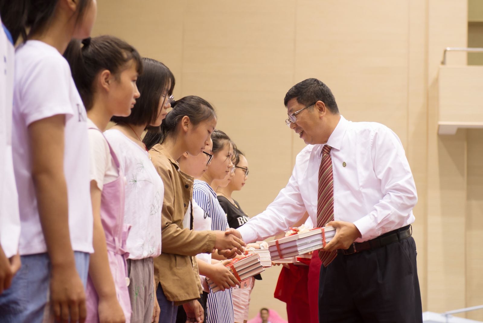 “青春是用来奋斗的”,学生的第一任务就是读书学习,求真学问,练真本领,近年来,广大学子孜孜以求,展示了良好的校风学风,涌现出一大批优秀学生典型。为了激励广大优秀高中毕业生踊跃报考我校,刻苦学习,努力成才,学校面向全体入学新生设立“新生特别奖”,2018级吴泓俊等18名学生获得该奖项,彭锦宣读了“新生特别奖”奖励文件。学校领导还为新生代表现场佩戴校徽。