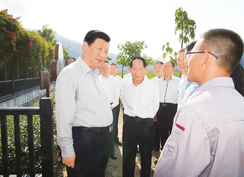 2018年4月11日至13日,中共中央总书记、国家主席、中央军委主席习近平在海南考察。这是4月12日下午,习近平在国家南繁科研育种基地同袁隆平院士等农业科技人员亲切交谈,了解水稻育制种产业发展和推广情况。 新华社记者 李学仁/摄