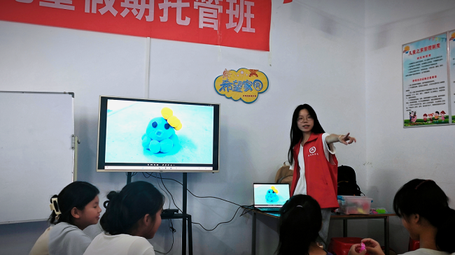 顺河镇乡村振兴产业园“爱心托管班”内洋溢着欢声笑语,原来是志愿者陈颖为孩子们带来了一堂生动有趣的黏土手工课。她首先向孩子们介绍了黏土的特性和基本技巧,当五颜六色的黏土分发到孩子们手中时,一张张小脸上立刻绽放出兴奋的光芒。在志愿者们的指导下,孩子们全神贯注地揉捏着手中的黏土。志愿者们穿梭在孩子们中间,时而俯身指导,时而轻声鼓励,温暖的互动让整个教室充满了爱的氛围。“老师你看我的小章鱼!”“这是我做的汉堡包!”课程临近尾声时,孩子们争先恐后地展示着自己的作品,眼中闪烁着自豪的光芒。这些充满童趣的作品不仅是孩子们想象力的结晶,更是他们收获成长的最好见证。
