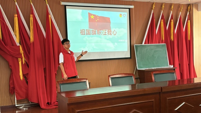 在白果镇渡桥村的德育课堂上,“祖国旗帜在我心”主题课程热烈展开。志愿者胡俊松用鲜活的故事,为孩子们解读国旗、党旗等祖国旗帜的历史与意义。他轻抚国旗告诉孩子们:“这抹红是无数先烈用鲜血染成的,五颗星紧紧相拥,就像我们各族人民团结在一起。”孩子们听得入神,在“画旗帜”环节,他们纷纷用画笔表达对祖国的热爱。这堂德育课,让红色种子在孩子们心中生根发芽。