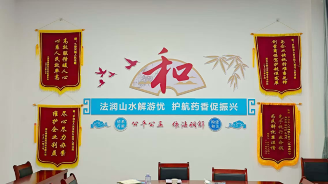 “共享法庭”织网,服务零距离:在游客中心、药材产业园、综治中心等关键节点布设“共享法庭”,践行发展共谋、阵地共享、资源共享、纠纷共调、诉源共治“五共”理念,贴身服务文旅、药旅产业及生态旅游发展。